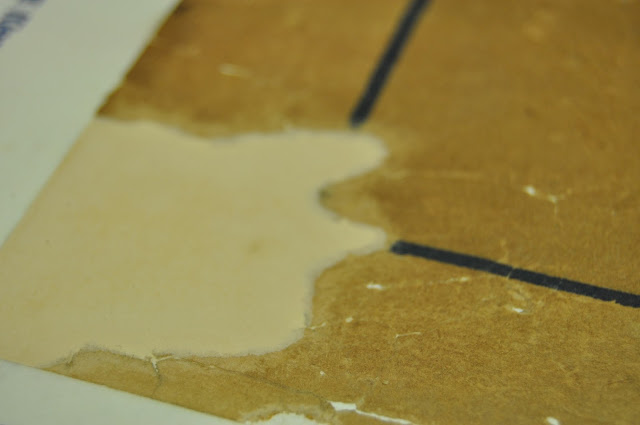 We have boxes and boxes of vintage posters and pieces of paper. Paper comes in varying thicknesses, colors and styles, so we try to find the most appropriate paper for each piece that we patch.